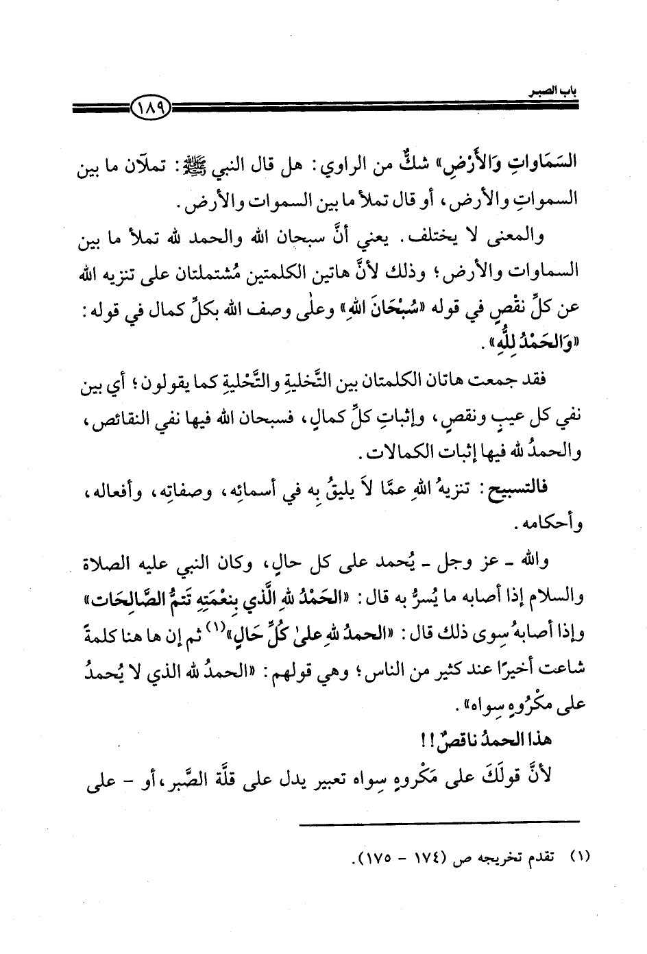 فقد جمعت هاتان الكلمتان بين التخلية والتحلية كما يقولون؛ أي بين نفي كل عيب ونقص، وإثبات كل كمال، فسبحان الله فيها نفي النقائص، والحمد لله فيها إثبات الكمالات.