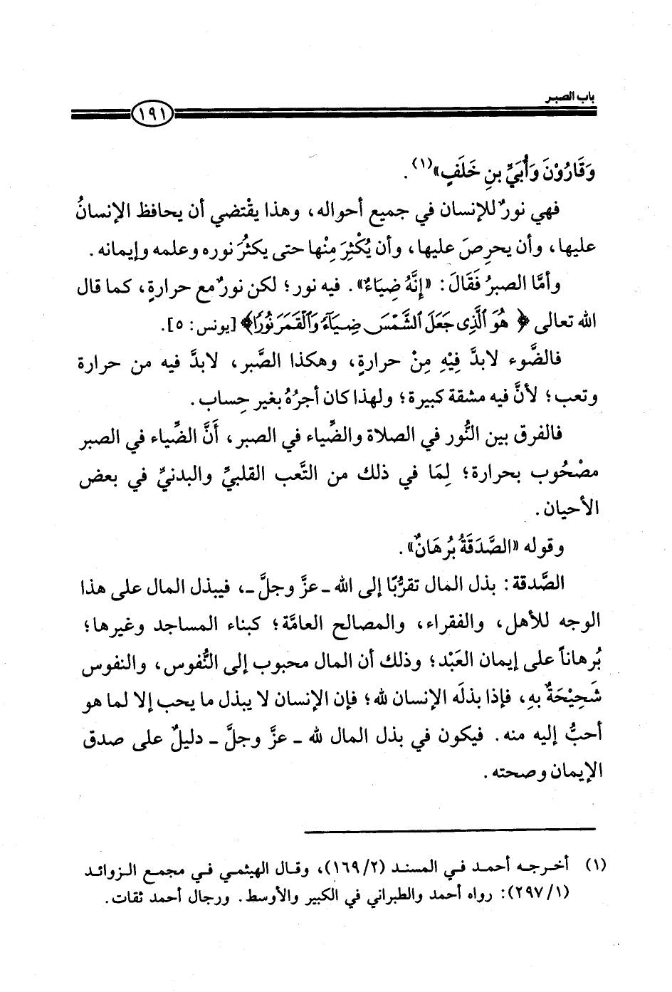 فالضوء لابد فيه من حرارة، وهكذا الصبر، لابد فيه من حرارة وتعب، لأن فيه مشقة كبيرة، ولهذا كان أجره بغير حساب.