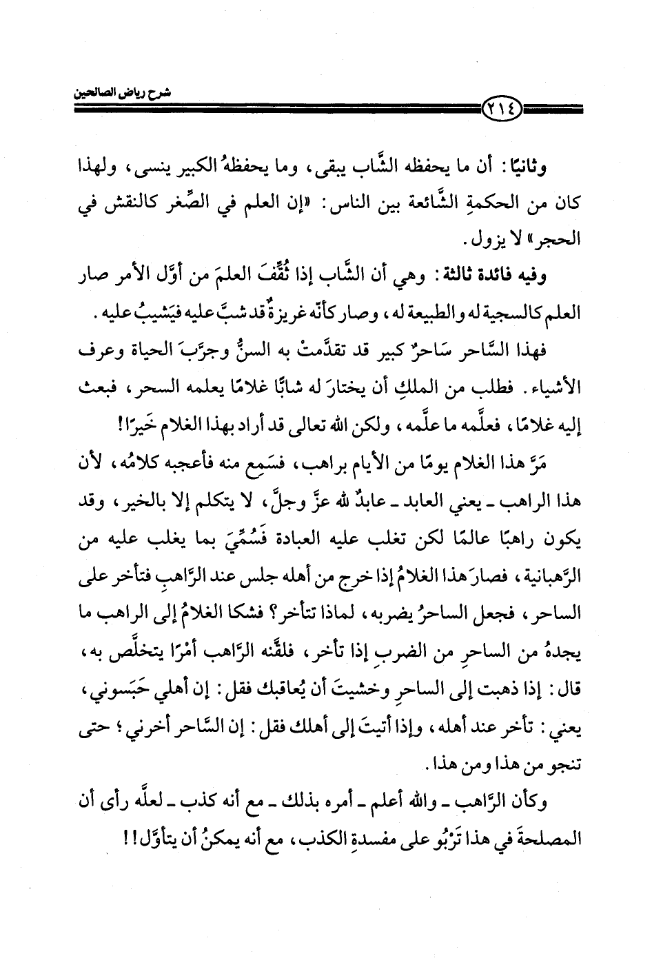 وفيه فائدة ثالثة: وهي أن الشاب إذا ثقف العلم من أول الأمر صار العلم كالسجية له والطبيعة له، وصار كأنه غريزة قد شب عليه فيشب عليه.