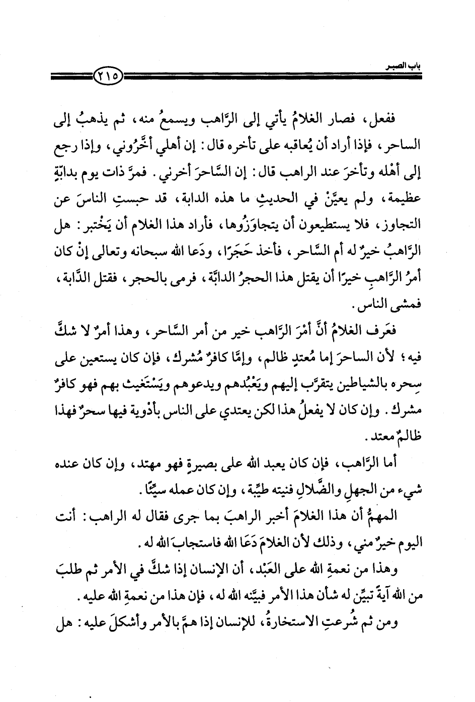 فعرف الغلام أن أمر الراهب خير من أمر الساحر، وهذا أمر لا شك فيه؛ لأن الساحر إما معتد ظالم، وإما كافر مشرك، فإن كان يستعين على سحره بالشياطين يتقرب إليهم ويعبدهم ويدعوهم ويستغيث بهم فهو كافر مشرك. وإن كان لا يفعل هذا لكن يعتدي على الناس بأدوية فيها سحر فهذا ظالم معتد.