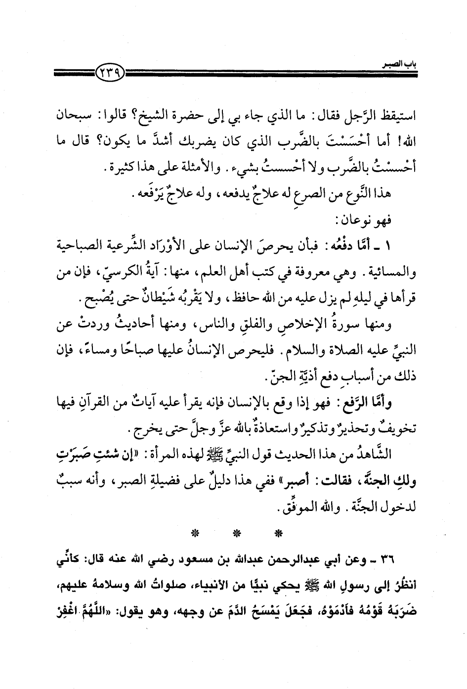 36- وعن أبي عبد الرحمن عبد الله بن مسعود رضي الله عنه قال: كأني أنظر غلي رسول الله صلي الله عليه وسلم يحكي نبينا من الأنبياء، صلوات الله وسلامه عليهم، ضربه قومه فادموه، فجعل يمسح الدم عن وجهه، وهو يقول: ((اللهم أغفر