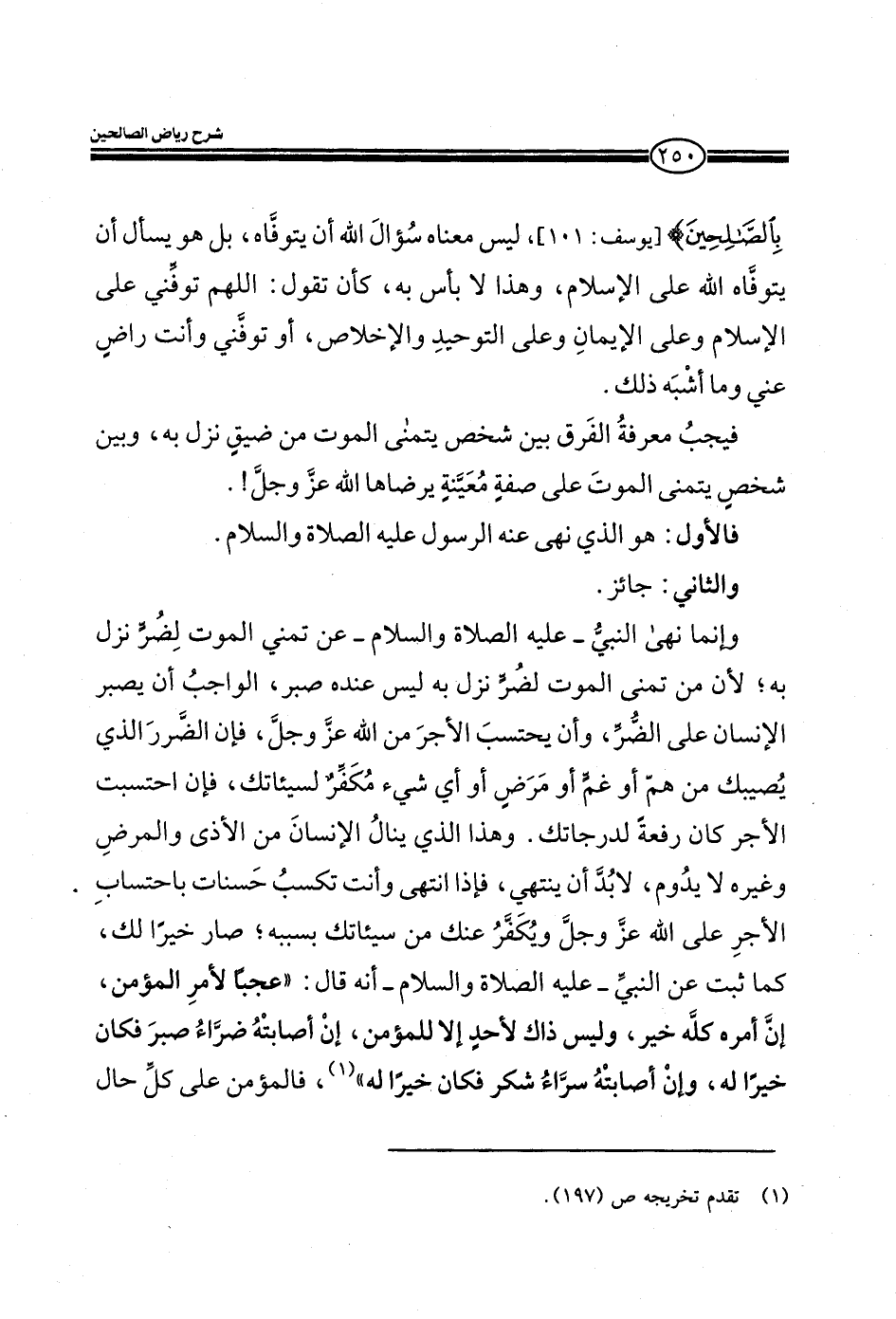 بِالصَّالِحِينَ) (يوسف: من الآية101) ليس معناه سؤال الله أن يتوفاه، بل هو يسأل أن يتوفاه الله علي الإسلام، وهذا لا باس به، كأن يقول: اللهم توفني على الإسلام وعلى الإيمان وعلى التوحيد والإخلاص، أو توفني وأنت راض عني وما أشبه ذلك.