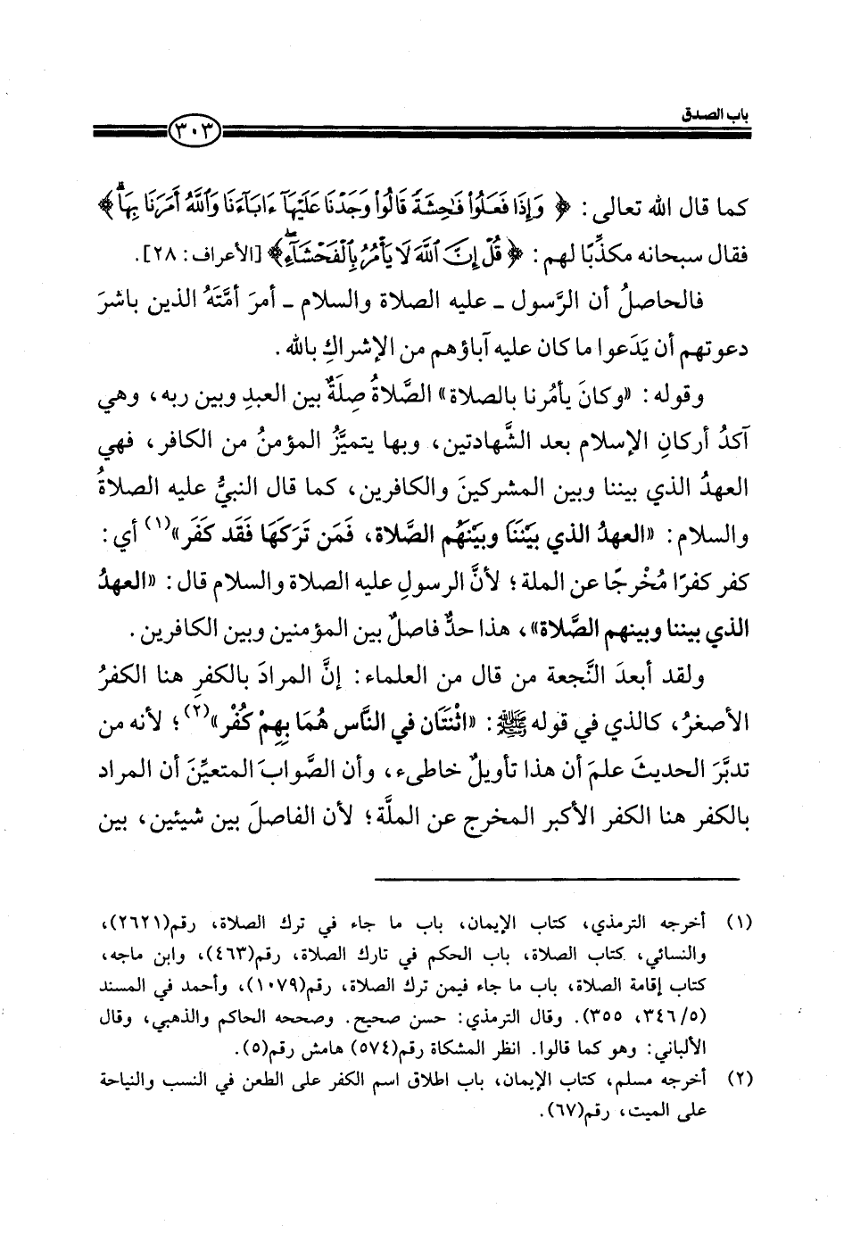 ولقد أبعد النجعة من قال من العلماء: إن المراد بالكفر الأصغر، كالذي في قوله صلى الله عليه وسلم: ((اثنتان في الناس هما بهم كفر)) ؛ لأنه من تدبر الحديث علم أن هذا تأويل خاطئ، وأن الصواب المتعين أن المراد بالكفر هنا الكفر الأكبر المخرج عن الملة؛ لأن الفاصل بين شيئين، بين