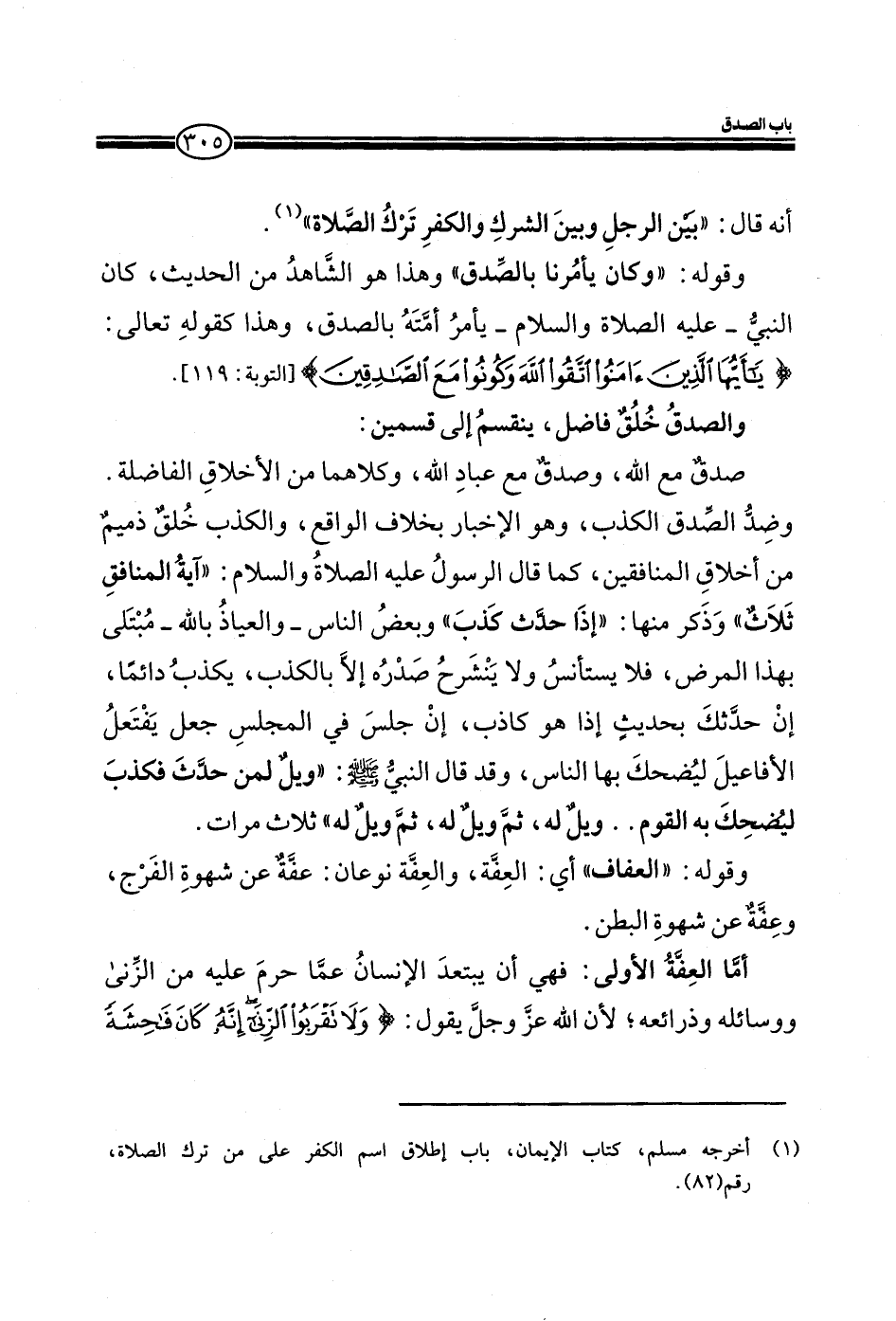 والصدق خلق فاضل، ينقسم إلى قسمين: