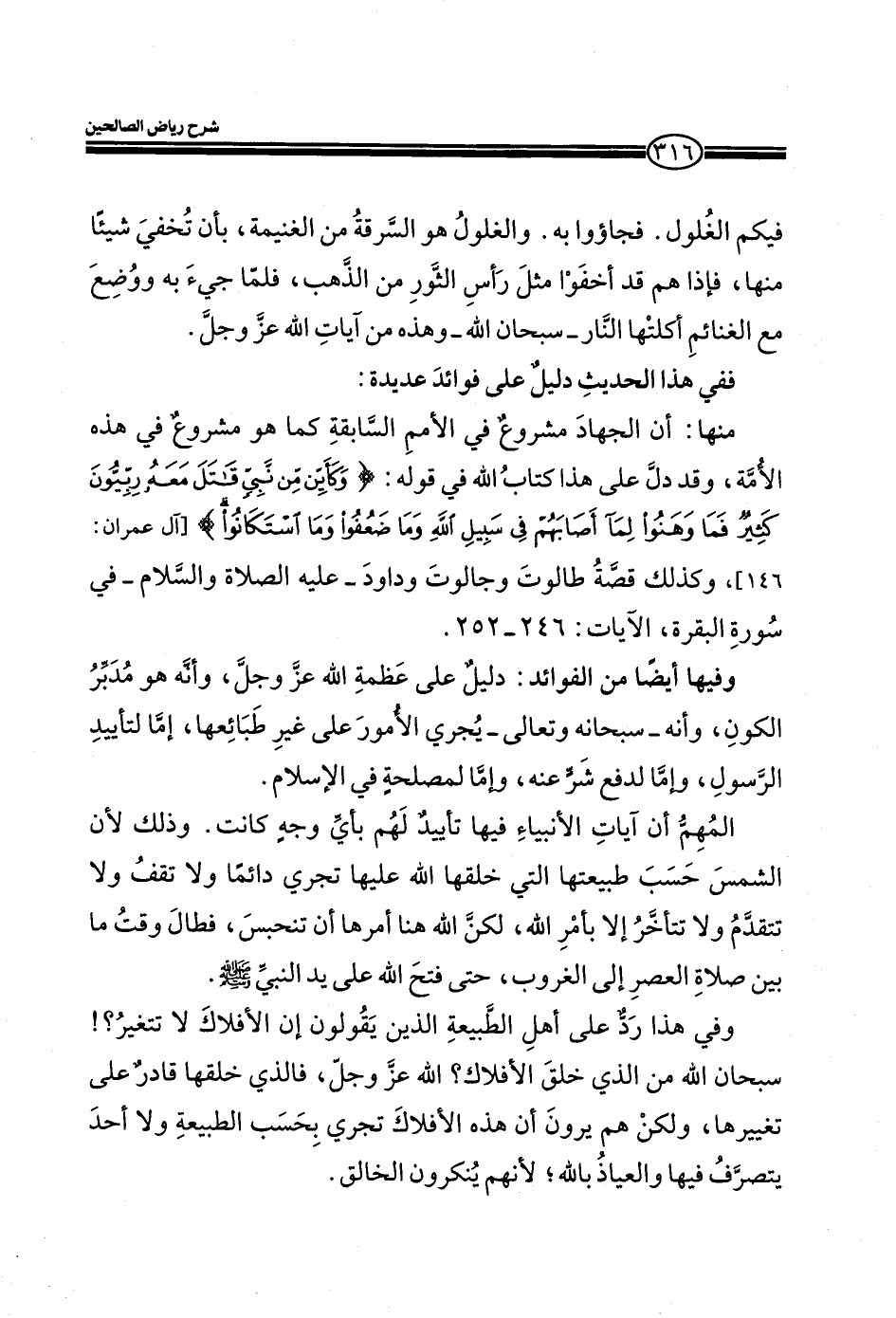 منها: أن الجهاد مشروع في الأمم السابقة كما هو مشروع في هذه الأمة، وقد دل علي هذا كتاب الله في قوله:) وَكَأَيِّنْ مِنْ نَبِيٍّ قَاتَلَ مَعَهُ رِبِّيُّونَ كَثِيرٌ فَمَا وَهَنُوا لِمَا أَصَابَهُمْ فِي سَبِيلِ اللَّهِ وَمَا ضَعُفُوا وَمَا اسْتَكَانُوا) (آل عمران: من الآية146) ، وكذلك قصة طالوت وجالوت وداود - عليه الصلاة والسلام- في سورة البقرة، الآيات 246/252.