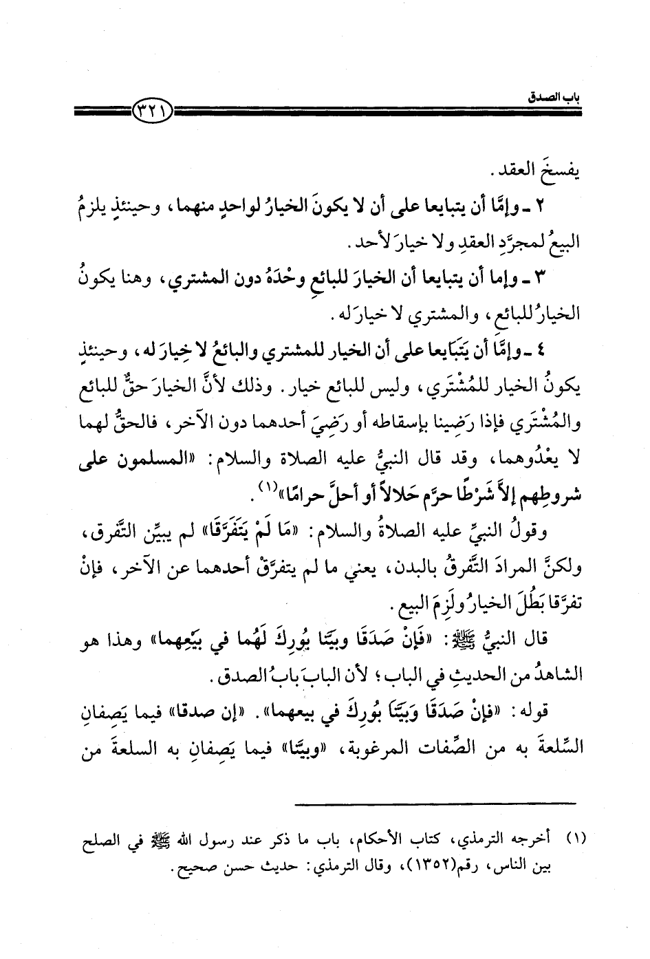 قال النبي صلي الله عليه وسلم: ((فإن صدقا وبيتا بورك لهما في بيعهما)) وهذا هو الشاهد من الحديث في الباب؛ لأن الباب باب الصدق.