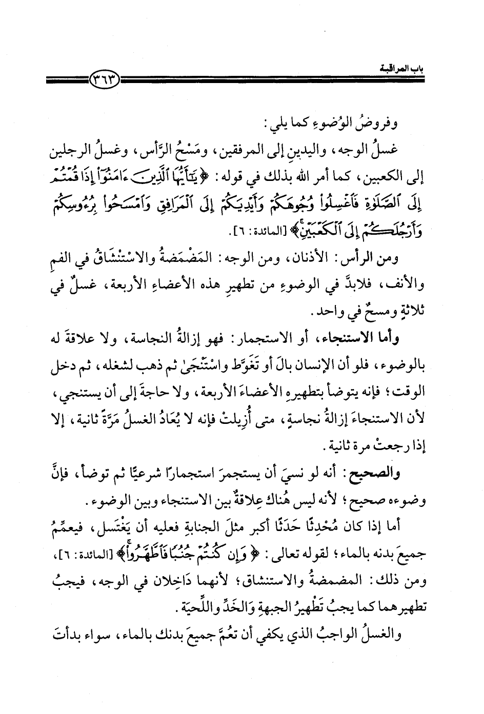 والصحيح: انه لو نسي أن يستجمر استجمارا شرعيا ثم توضأ، فان وضوءه صحيح، لأنه هناك ليس علاقة بين الاستنجاء وبين الوضوء أما إذا كان محدثا حدثا اكبر مثل الجنابة فعليه أن يغتسل، فيعمم جميع بدنه بالماء لقوله تعالى: (وَإِنْ كُنْتُمْ جُنُباً فَاطَّهَّرُوا) (المائدة: من الآية6) ومن ذلك: المضمضة والاستنشاق، لأنهما داخلان في الوجه، فيجب تطهيرهما كما يجب تطهير الجبهة والخد واللحية. والغسل الواجب الذي يكفي أن تعم جميع بدنك بالماء، سواء بدأت