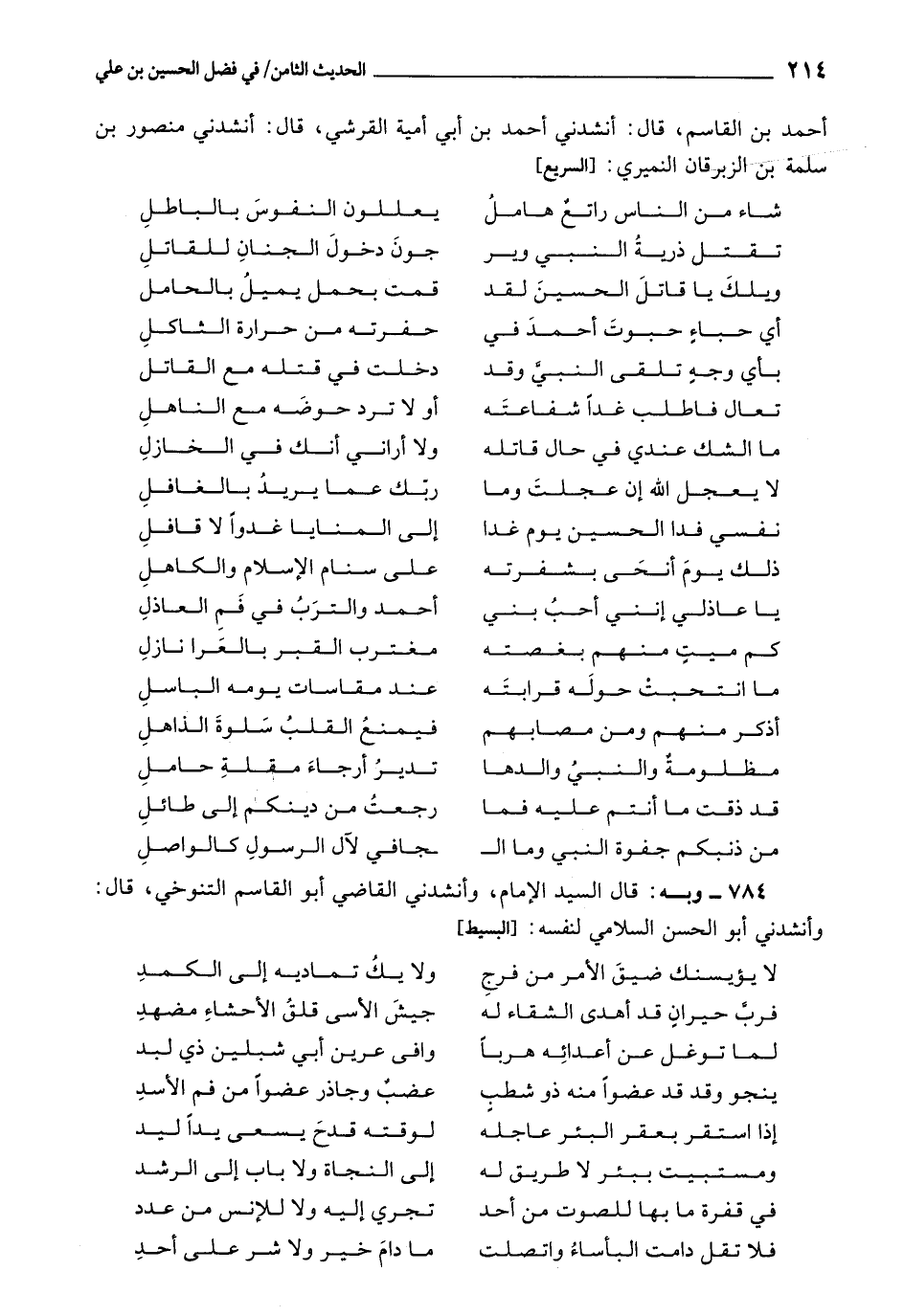 784 - قَالَ السَّيِّدُ الْإِمَامُ، وَأَنْشَدَنِي الْقَاضِي أَبُو الْقَاسِمِ التَّنُوخِيُّ، قَالَ: وَأَنْشَدَنِي أَبُو الْحَسَنِ السَّلَامِيُّ لِنَفْسِهِ: