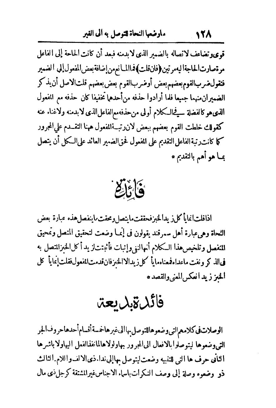 الوصلات في كلامهم التي وضعوها للتوصل بها إلى غيرها خمسة أقسام أحدها حروف الجر التي وضعوها ليتوصلوا بالأفعال إلى المجرور بها ولولاها لما نفذ الفعل إليها ولا باشرها الثاني حرف ها التي للتنبيه وضعت ليتوصل بها إلى نداء ذي الألف واللام الثالث ذو وضعوها وصلة إلى وصف النكرات بأسماء الأجناس غير المشتقة كرجل ذي مال