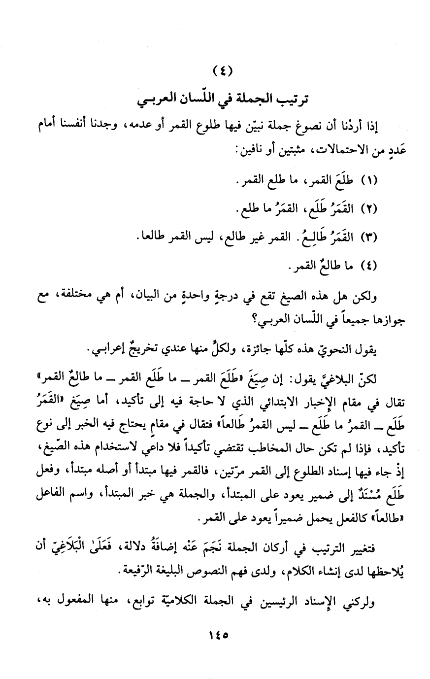 (4) ترتيب الجملة في اللّسان العربي