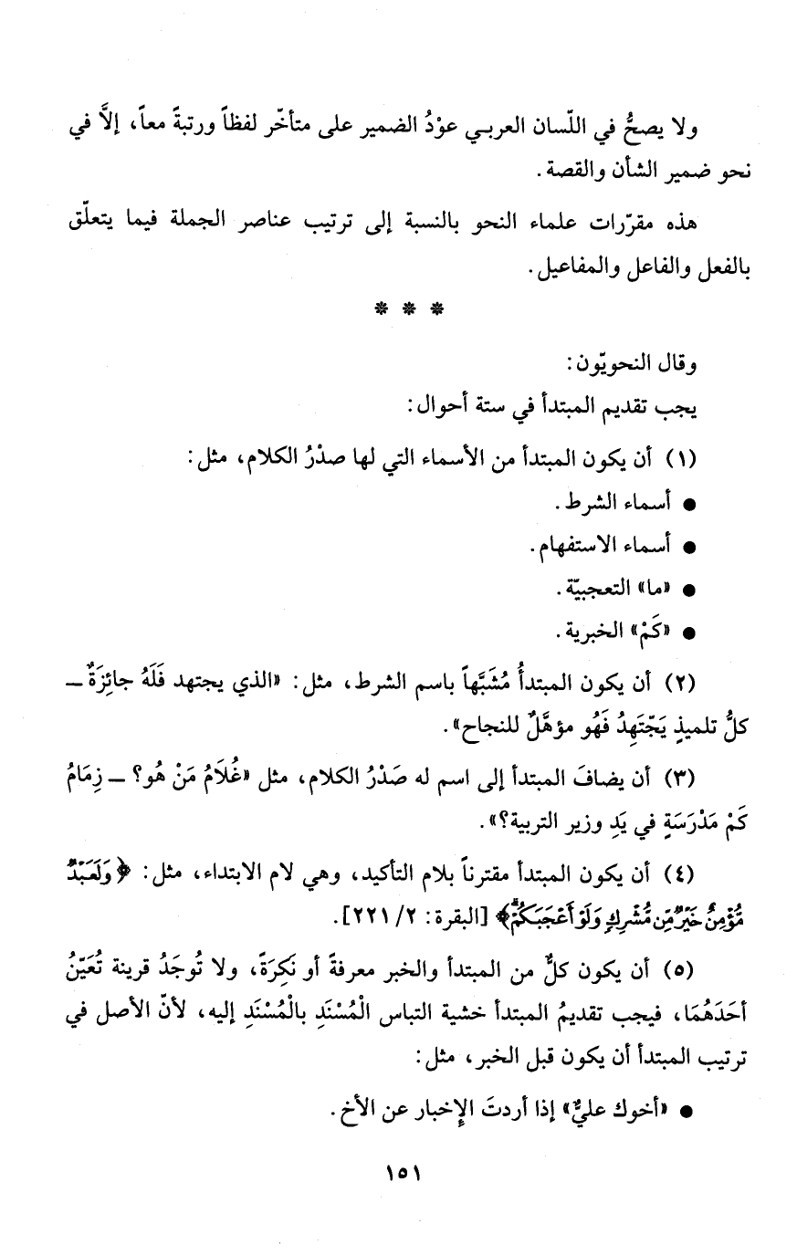 هذه مقرّرات علماء النحو بالنسبة إلى ترتيب عناصر الجملة فيما يتعلّق بالفعل والفاعل والمفاعيل.