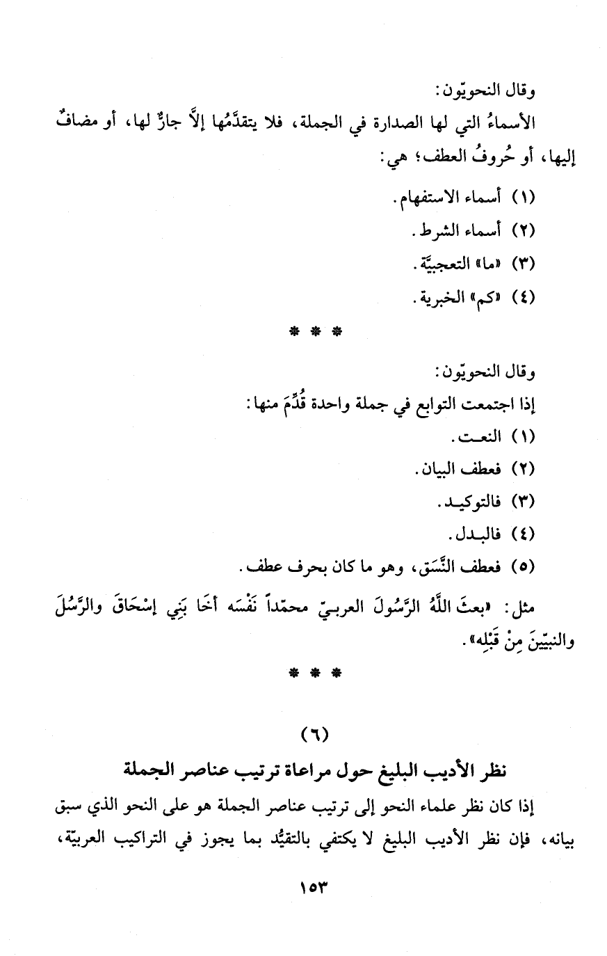(6) نظر الأديب البليغ حول مراعاة ترتيب عناصر الجملة