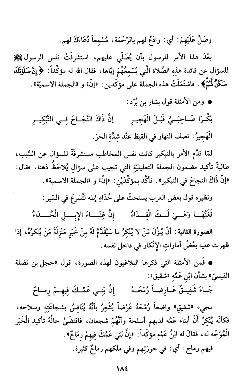 بعْدَ هذا الأمر للرسول بأن يُصَلّي عليهم، استشرفَتْ نفس الرسول صَلَّى اللهُ عَلَيْهِ وَسَلَّمَ للسؤال عن فائدة هذِهِ الصَّلاة الَّتي يُسْمِعُهُمْ إيّاها، فقال الله له مؤكِّداً: {إِنَّ صلاوتك سَكَنٌ لَّهُمْ} . فاشتَمَلَتْ هذه الجملة على مؤكّدين: "إنّ" و"الجملة الاسميّة".