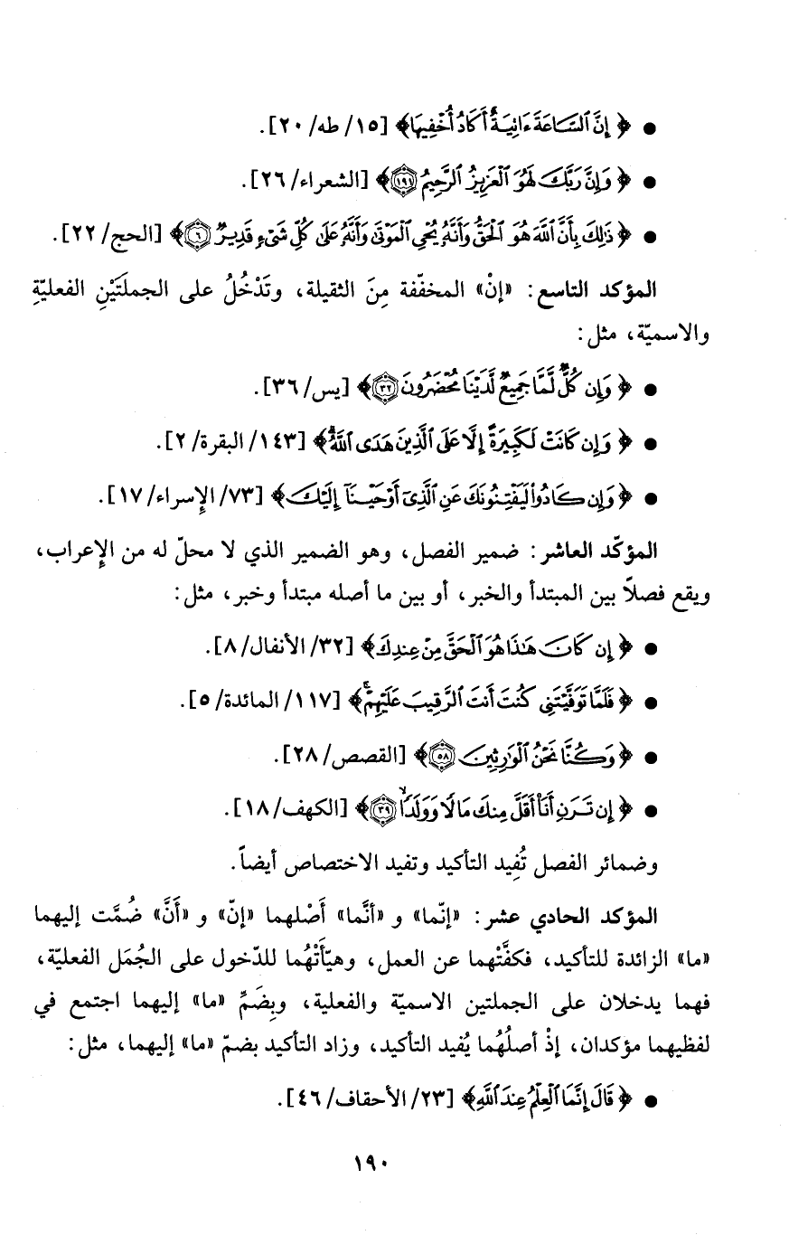 * المؤكد التاسع: "إنْ" المخفّفة مِنَ الثقيلة، وتَدْخُلُ على الجملَتَيْنِ الفعليّةِ والاسميّة، مثل: