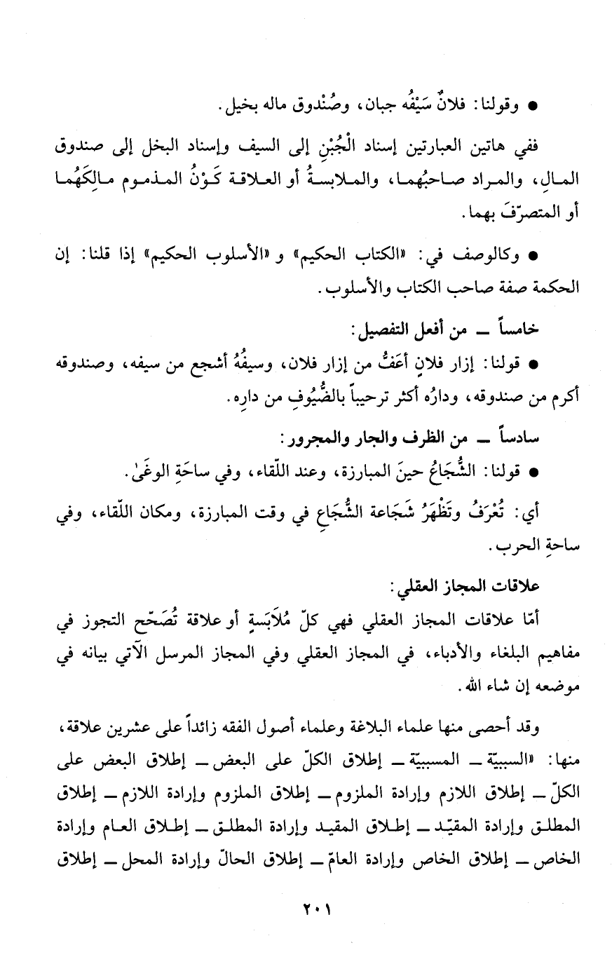 * وكالوصف في: "الكتاب الحكيم" و"الأسلوب الحكيم" إذا قلنا: إن الحكمة صفة صاحب الكتاب والأسلوب.