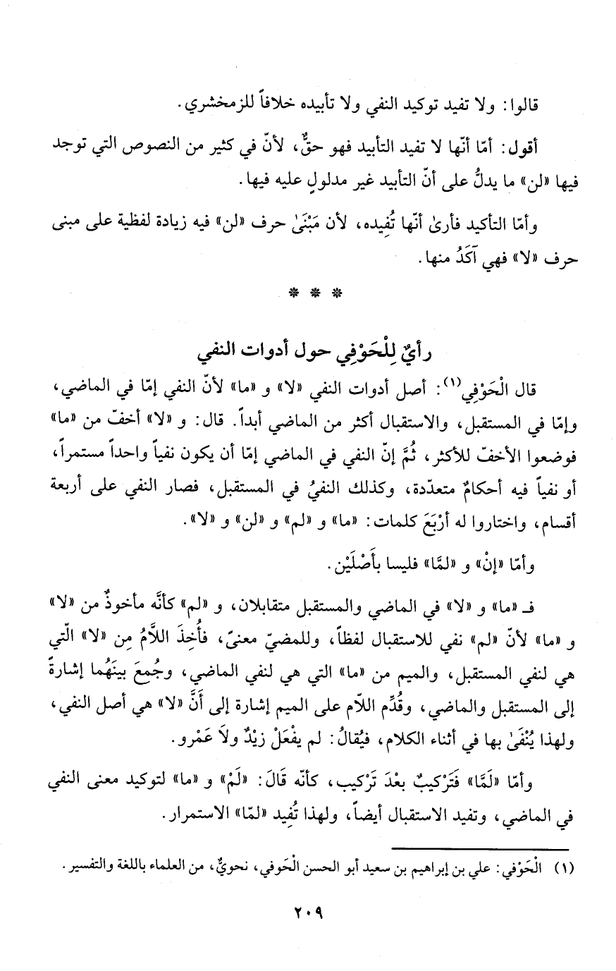 رأيٌ لِلْحَوْفِي حول أدوات النفي