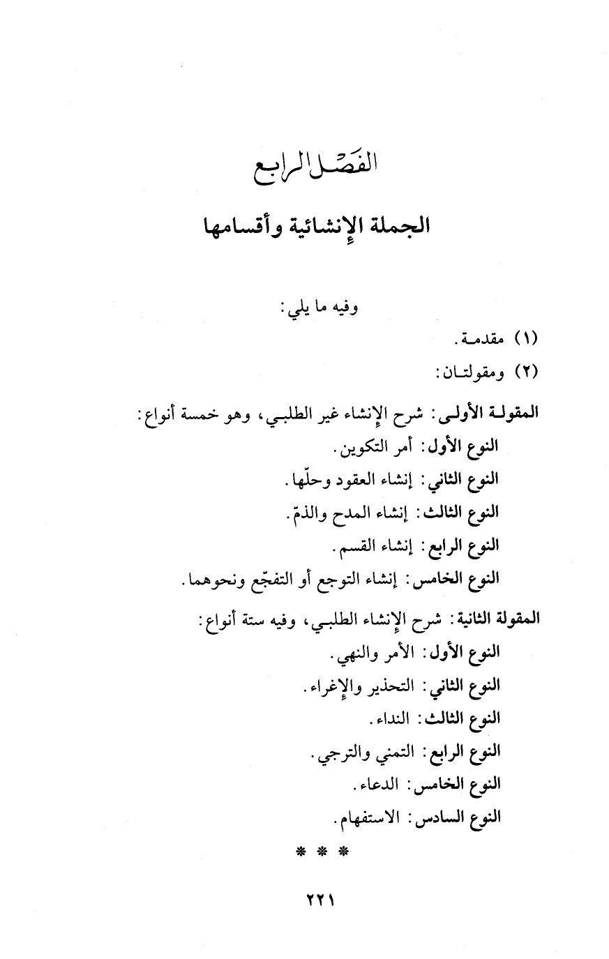 المقولة الأولى: شرح الإِنشاء غير الطلبي، وهو خمسة أنواع: