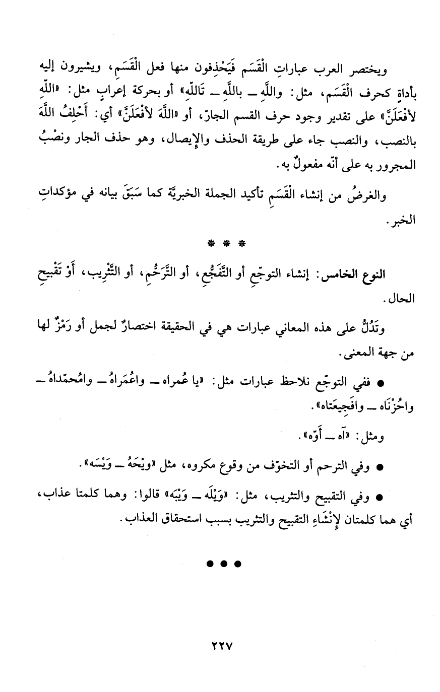 النوع الخامس: إنشاء التوجّعِ أو التَّفَجُّعِ، أو التَّرَحُّمِ، أو التَّثْرِيب، أَوْ تَقْبيحِ الحال.