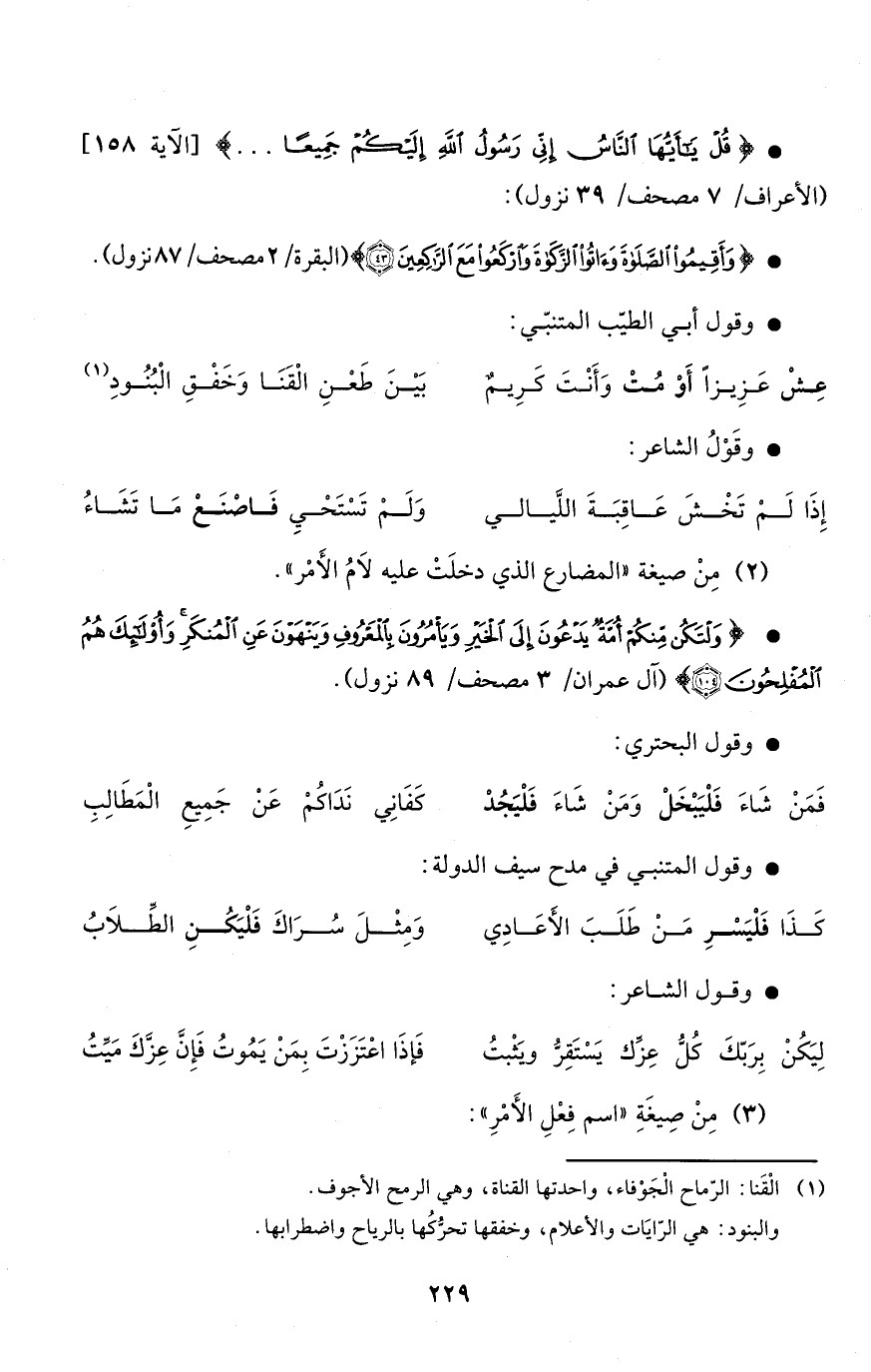 عِشْ عَزِيزاً أَوْ مُتْ وَأَنْتَ كَرِيمٌ ... بَيْنَ طَعْنٍ الْقَنَا وَخَفْقِ الْبُنُودِ
