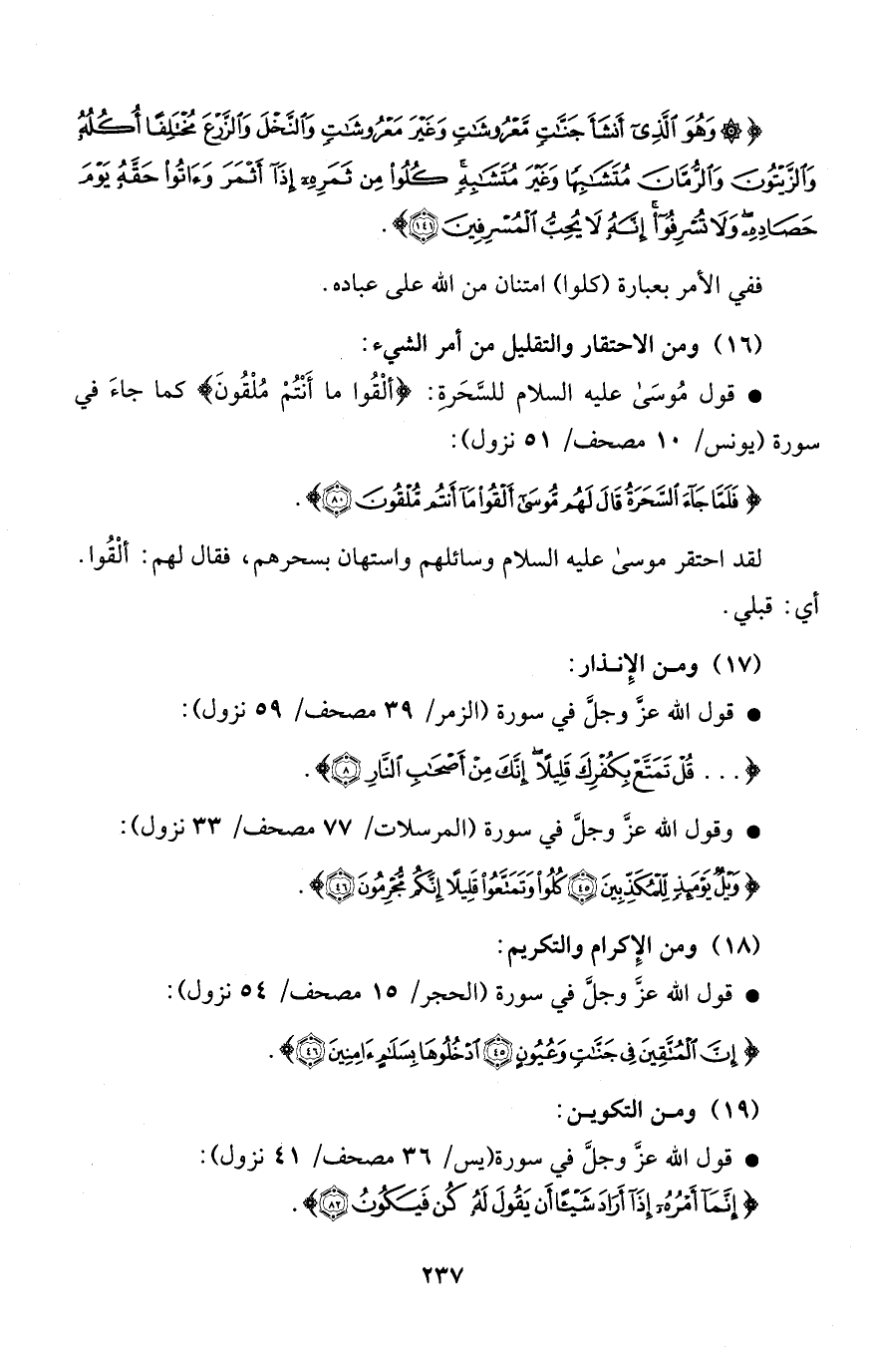 {وَهُوَ الذي أَنشَأَ جَنَّاتٍ مَّعْرُوشَاتٍ وَغَيْرَ مَعْرُوشَاتٍ والنخل والزرع مُخْتَلِفاً أُكُلُهُ والزيتون والرمان مُتَشَابِهاً وَغَيْرَ مُتَشَابِهٍ كُلُواْ مِن ثَمَرِهِ إِذَآ أَثْمَرَ وَآتُواْ حَقَّهُ يَوْمَ حَصَادِهِ وَلاَ تسرفوا إِنَّهُ لاَ يُحِبُّ المسرفين} [الآية: 141] .