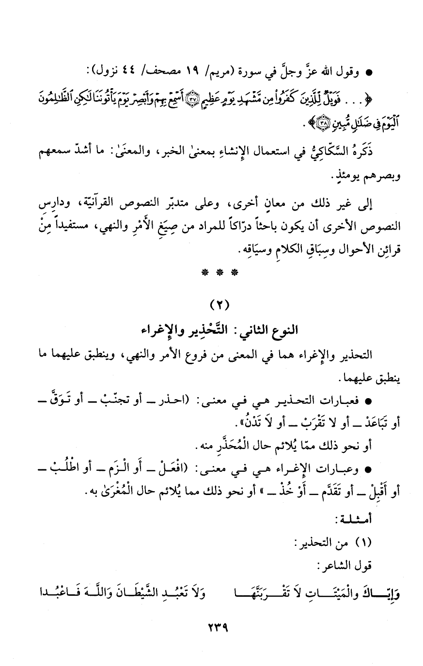 (2) النوع الثاني: التَّحْذِير والإِغراء