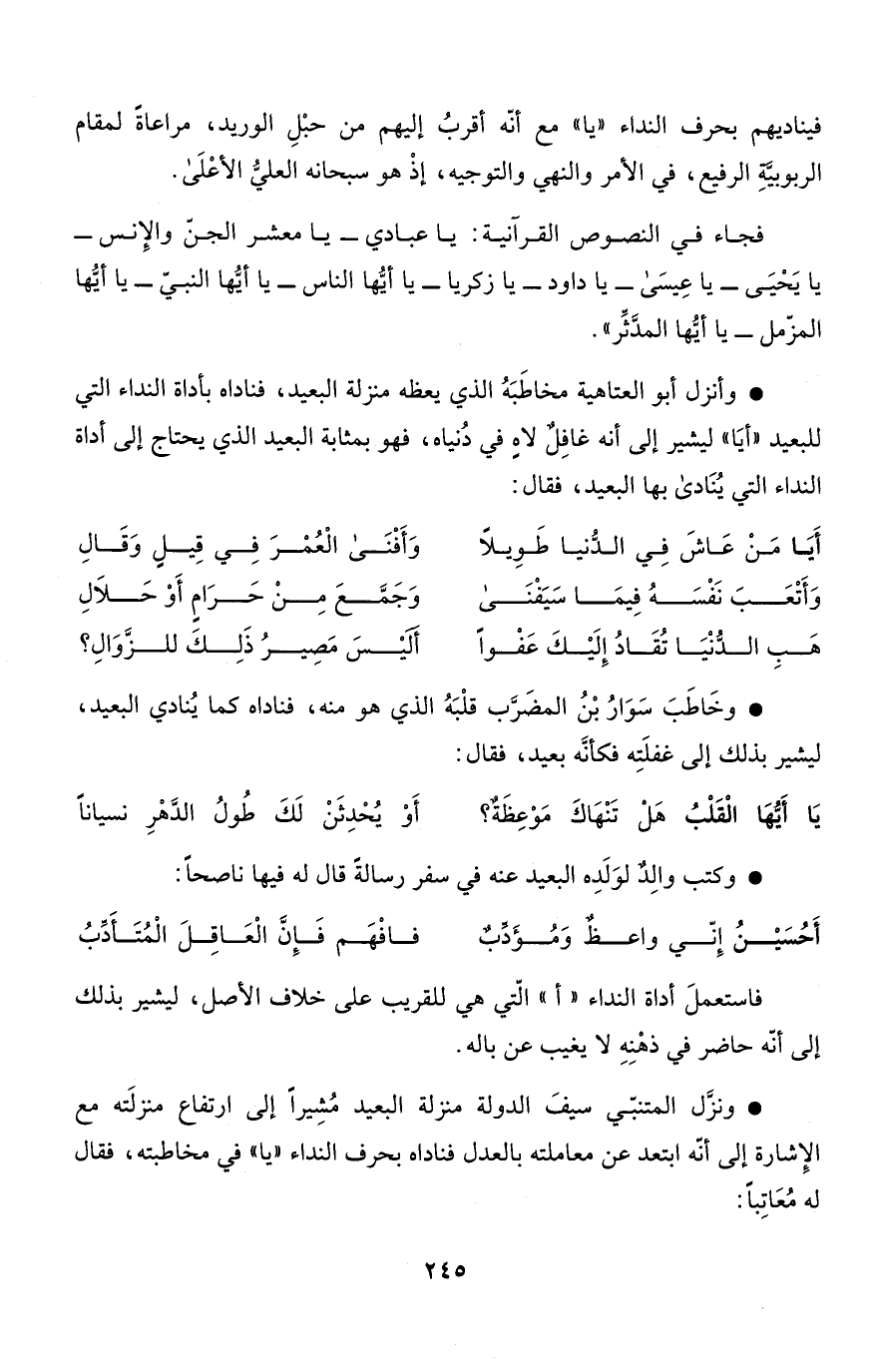 * ونزَّل المتنبّي سيفَ الدولة منزلة البعيد مُشِيراً إلى ارتفاع منزلَته مع الإِشارة إلى أنّه ابتعد عن معاملته بالعدل فناداه بحرف النداء "يا" في مخاطبته، فقال له مُعَاتِباً: