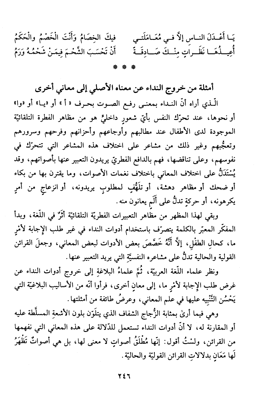 أمثلة من خروج النداء عن معناه الأصلي إلى معاني أخرى
