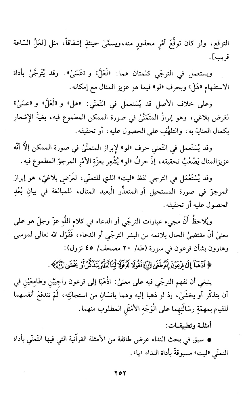 ينبغي أن نفهم الترجّي فيه على معنى: اذْهَبَا إلى فرعون راجِيَيْنِ وطامِعَيْنِ في أن يتذكّر أو يخشَى، إذ لو ذهبا إليه وهما يائسَانِ من استجابَتِه، لَمْ تندفعْ أنفسهما للقيام بمهمّةِ رسَالَتِهِما على الْوَجْهِ الأمْثَلِ المطلوب منهما.
