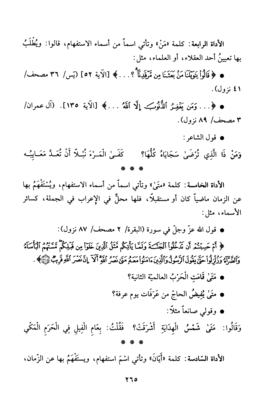 الأداة الخامسة: كلمة "متَى" وتأتي اسماً من أسماء الاستفهام، ويُسْتَفْهَمُ بها عن الزمان ماضياً كان أم مستقبلاً، فلها محلٌّ في الإِعراب في الجملة، كسائر الأسماء، مثل: