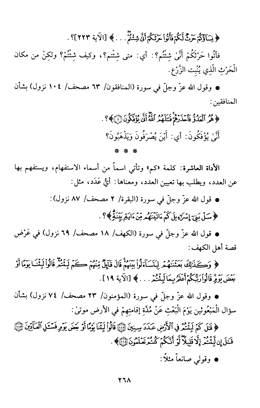 * وقول الله عزّ وجلّ في سورة (المؤمنين/ 23 مصحف/ 74 نزول) بشأن سؤال المَبْعُوثين يَوْمَ الْبَعْثِ عَنْ مُدَّةِ إقامتِهِمْ في الأرض موتى: