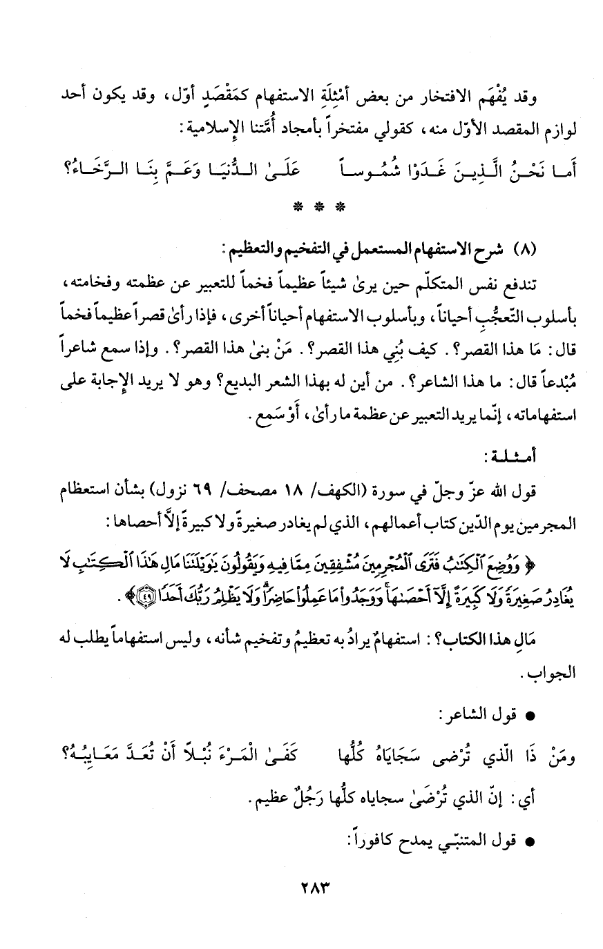 (8) شرح الاستفهام المستعمل في التفخيم والتعظيم: