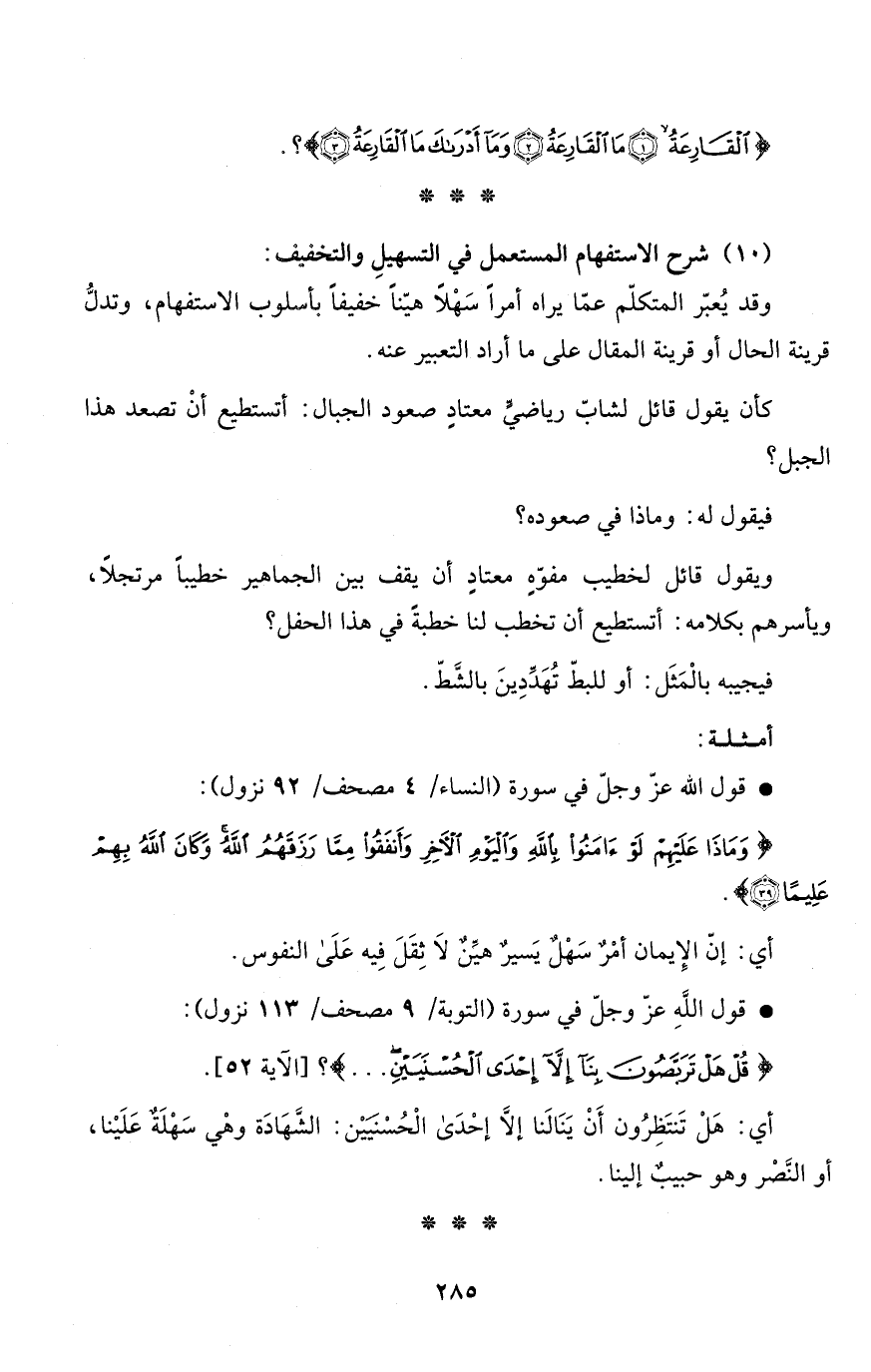 (10) شرح الاستفهام المستعمل في التسهيلِ والتخفيف: