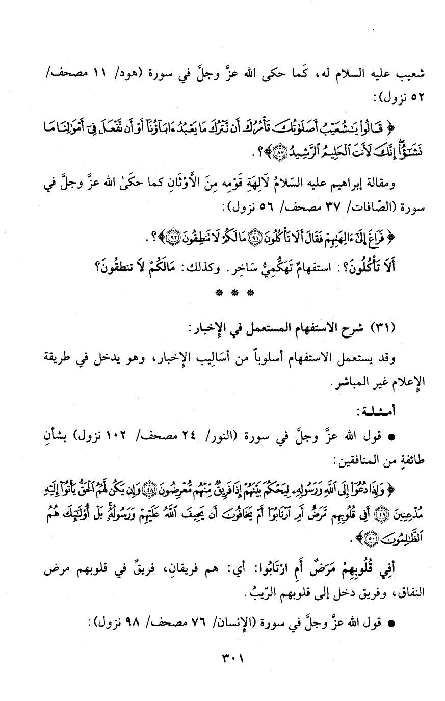 (31) شرح الاستفهام المستعمل في الإِخبار: