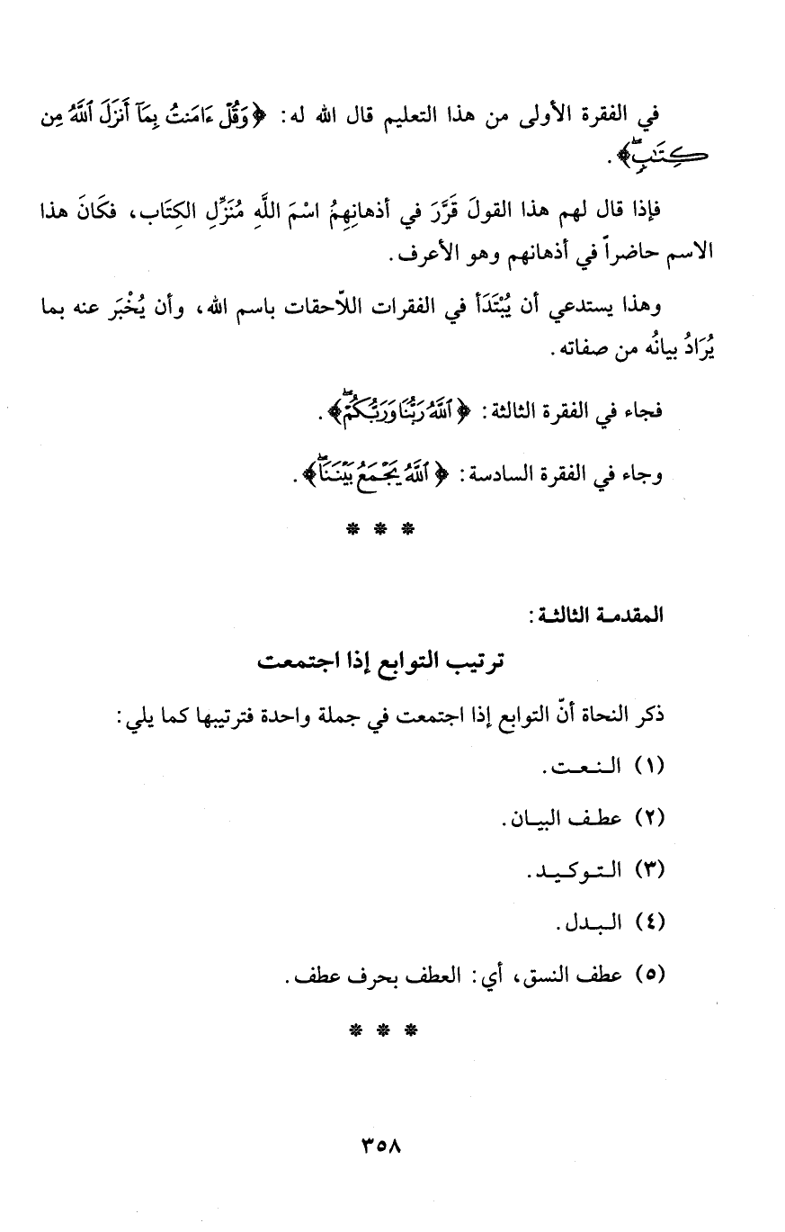 وهذا يستدعي أن يُبْتَدَأ في الفقرات اللاّحقات باسم الله، وأن يُخْبَر عنه بما يُرَادُ بيانُه من صفاته.