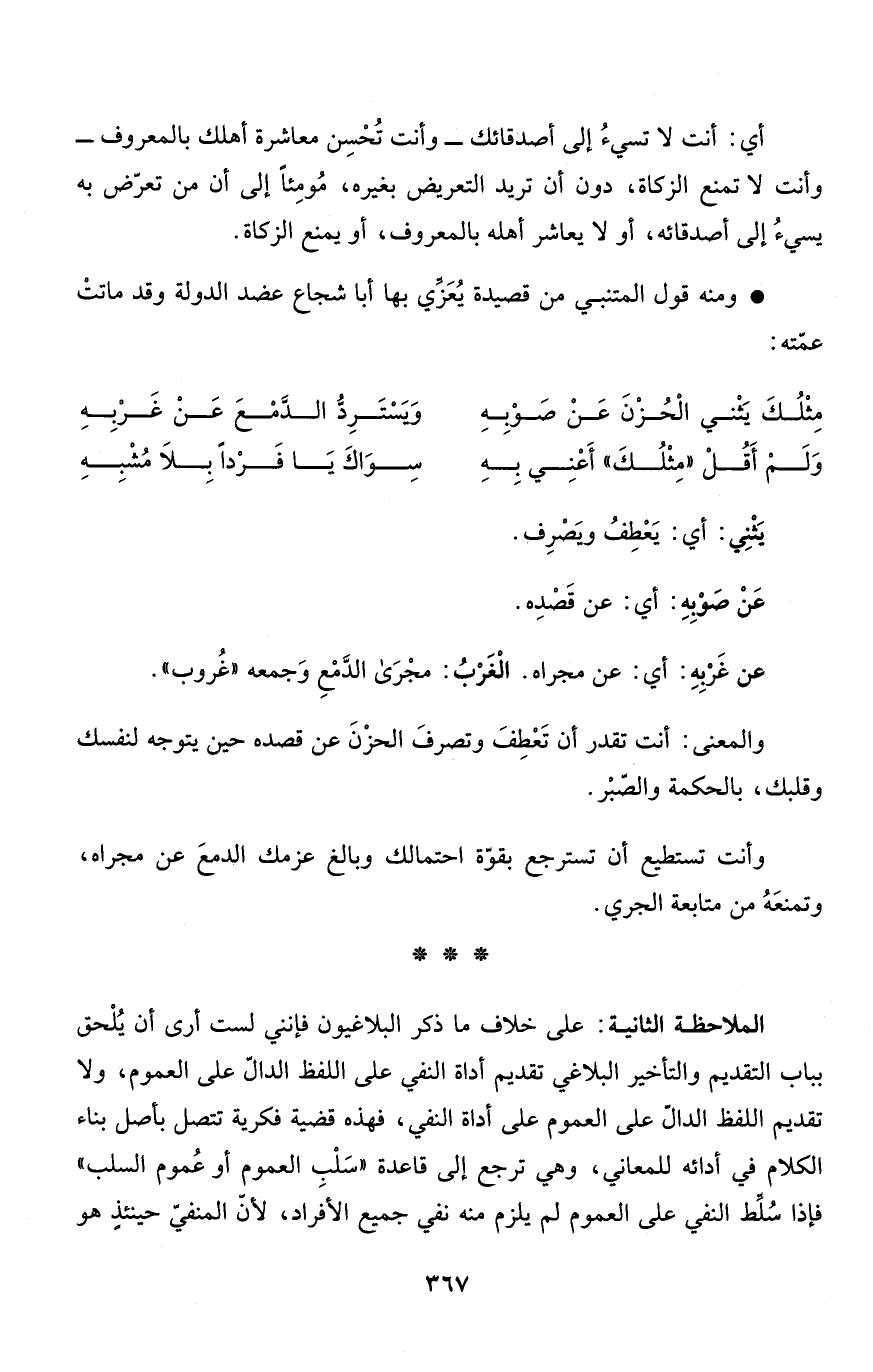 مِثْلُكَ يَثْني الْحُزْنَ عَنْ صَوْبِهِ ... وَيَسْتَرِدُّ الدَّمْعَ عَنْ غَرْبِهِ
