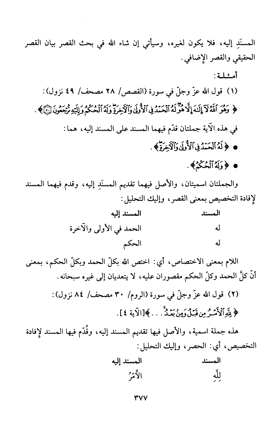 المسنَدِ إليه، فلا يكون لغيره، وسيأتي إن شاء الله في بحث القصر بيان القصر الحقيقي والقصر الإضافي.