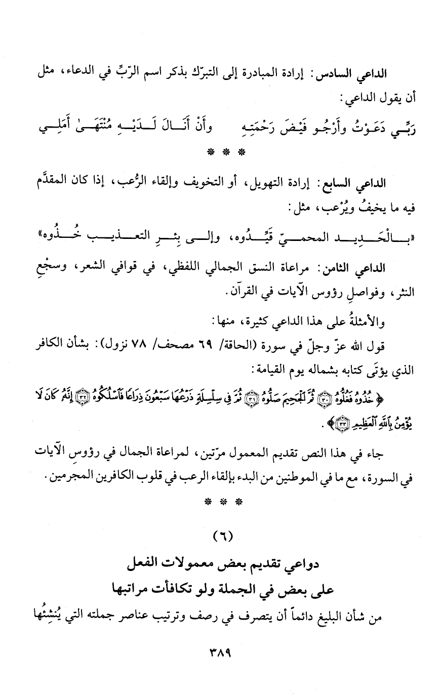 (6) دواعي تقديم بعض معمولات الفعل على بعض في الجملة ولو تكافأت مرابتها