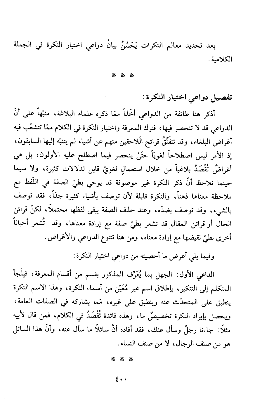 بعد تحديد معالم النكرات يَحْسُنُ بيانُ دواعي اختيار النكرة في الجملة الكلامية.