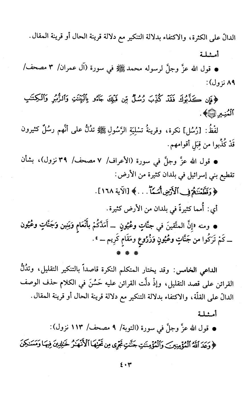 * ومنه {إِنَّ المتقين فِي جَنَّاتٍ وَعُيُونٍ - أَمَدَّكُمْ بِأَنْعَامٍ وَبَنِينَ - كَمْ تَرَكُواْ مِن جَنَّاتٍ وَعُيُونٍ * وَزُرُوعٍ وَمَقَامٍ كَرِيمٍ -} .