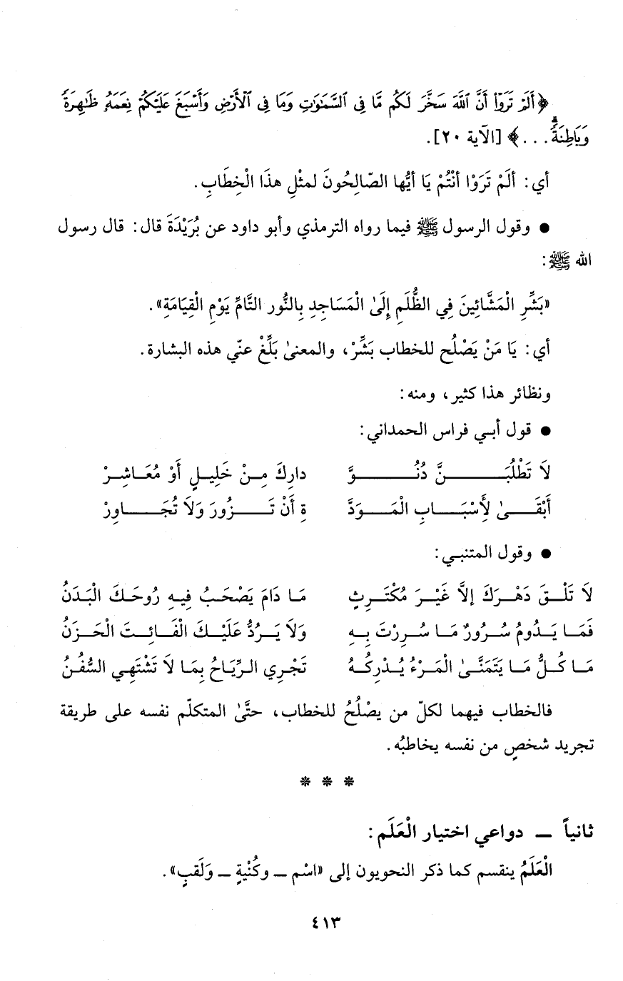 الْعَلَمُ ينقسم كما ذكر النحويون إلى "اسْم - وكُنْيةٍ - وَلَقبٍ".