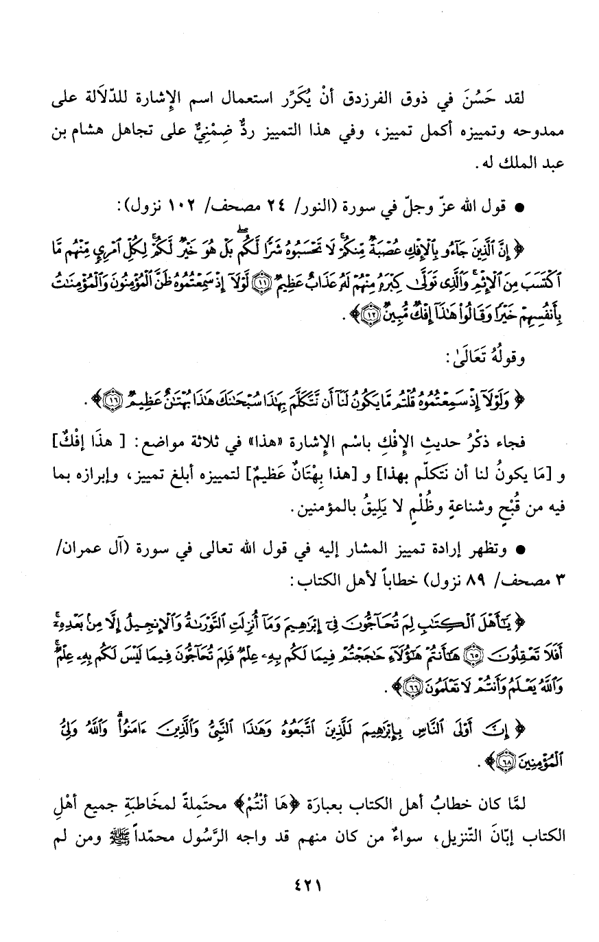 * وتظهر إرادة تمييز المشار إليه في قول الله تعالى في سورة (آل عمران/ 3 مصحف/ 89 نزول) خطاباً لأهل الكتاب: