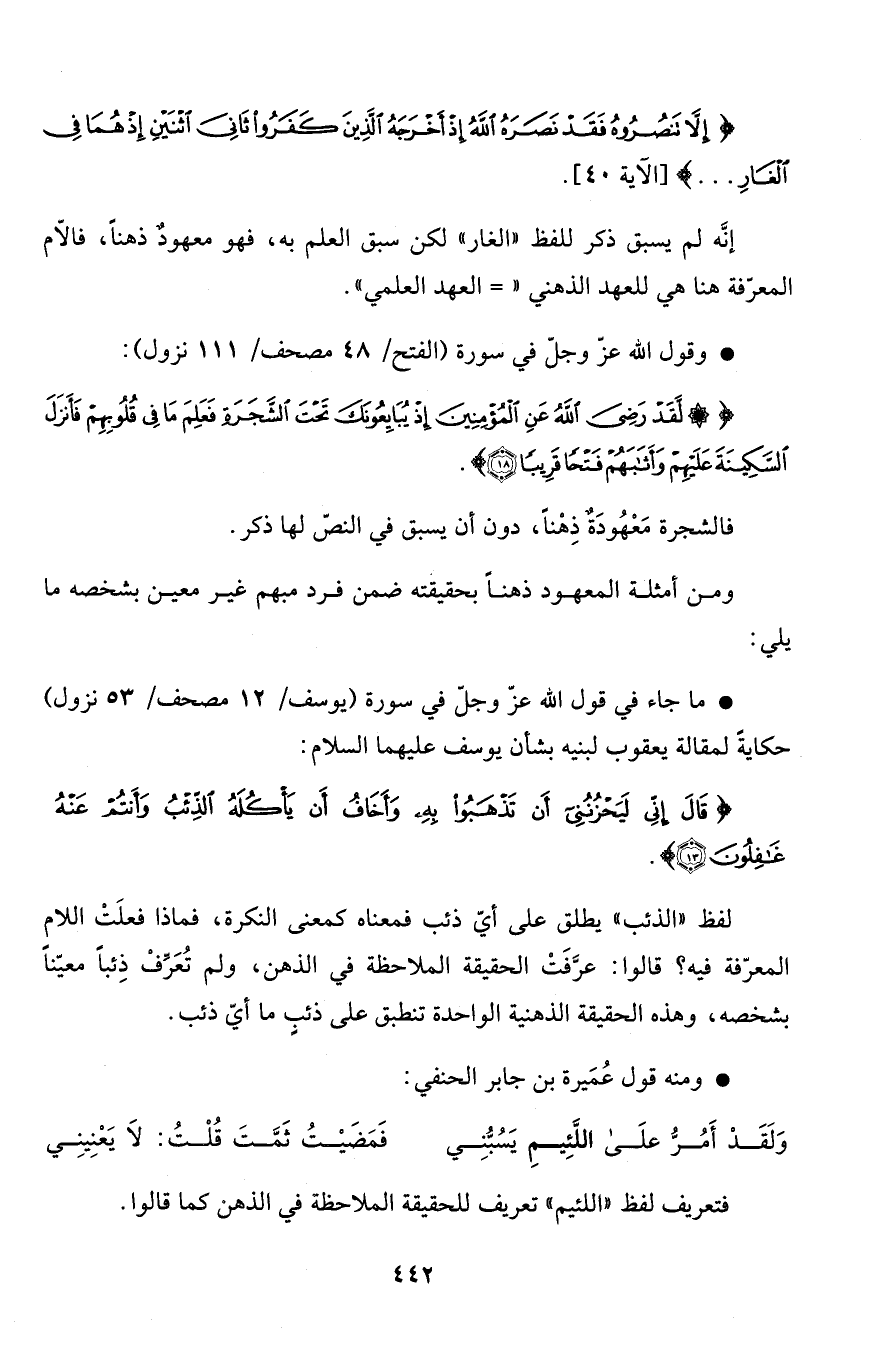 فالشجرة مَعْهُودَةٌ ذِهْناً، دون أن يسبق في النصّ لها ذكر.