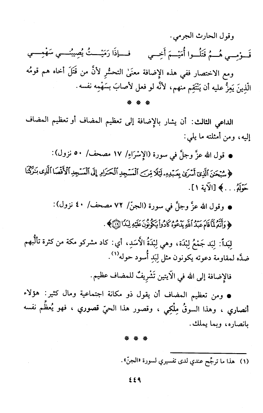 الداعي الثالث: أن يشار بالإِضافة إلى تعظيم المضاف أو تعظيم المضاف إليه، ومن أمثلته ما يلي: