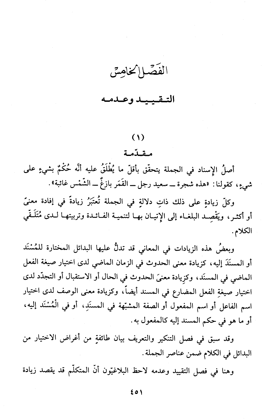 وهنا في فصل التقييد وعدمه لاحظ البلاغيّون أنّ المتكلّم قد يقصد زيادة