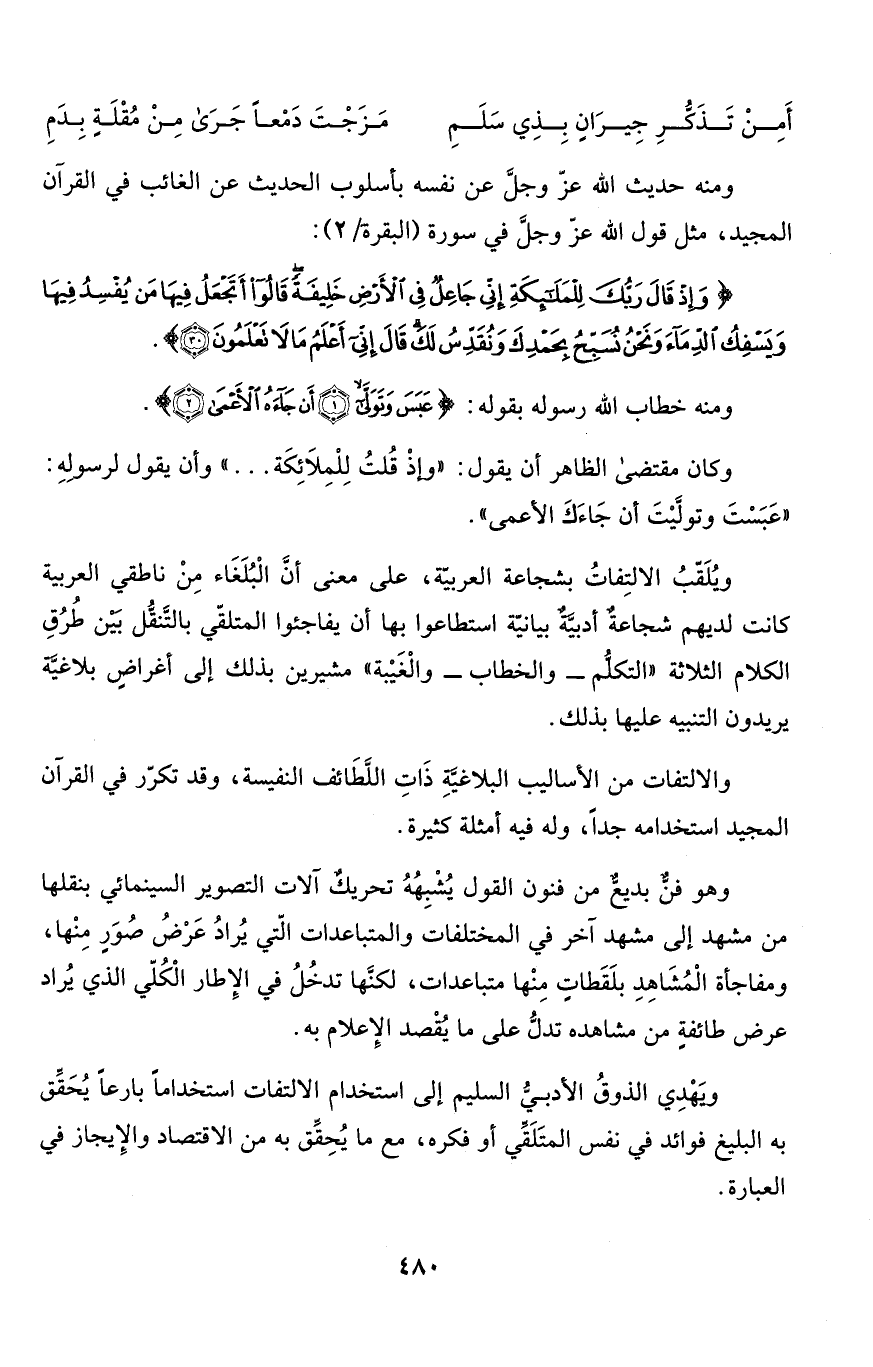 والالتفات من الأساليب البلاغيَّةِ ذَاتِ اللَّطَائف النفيسة، وقد تكرّر في القرآن المجيد استخدامه جداً، وله فيه أمثلة كثيرة.