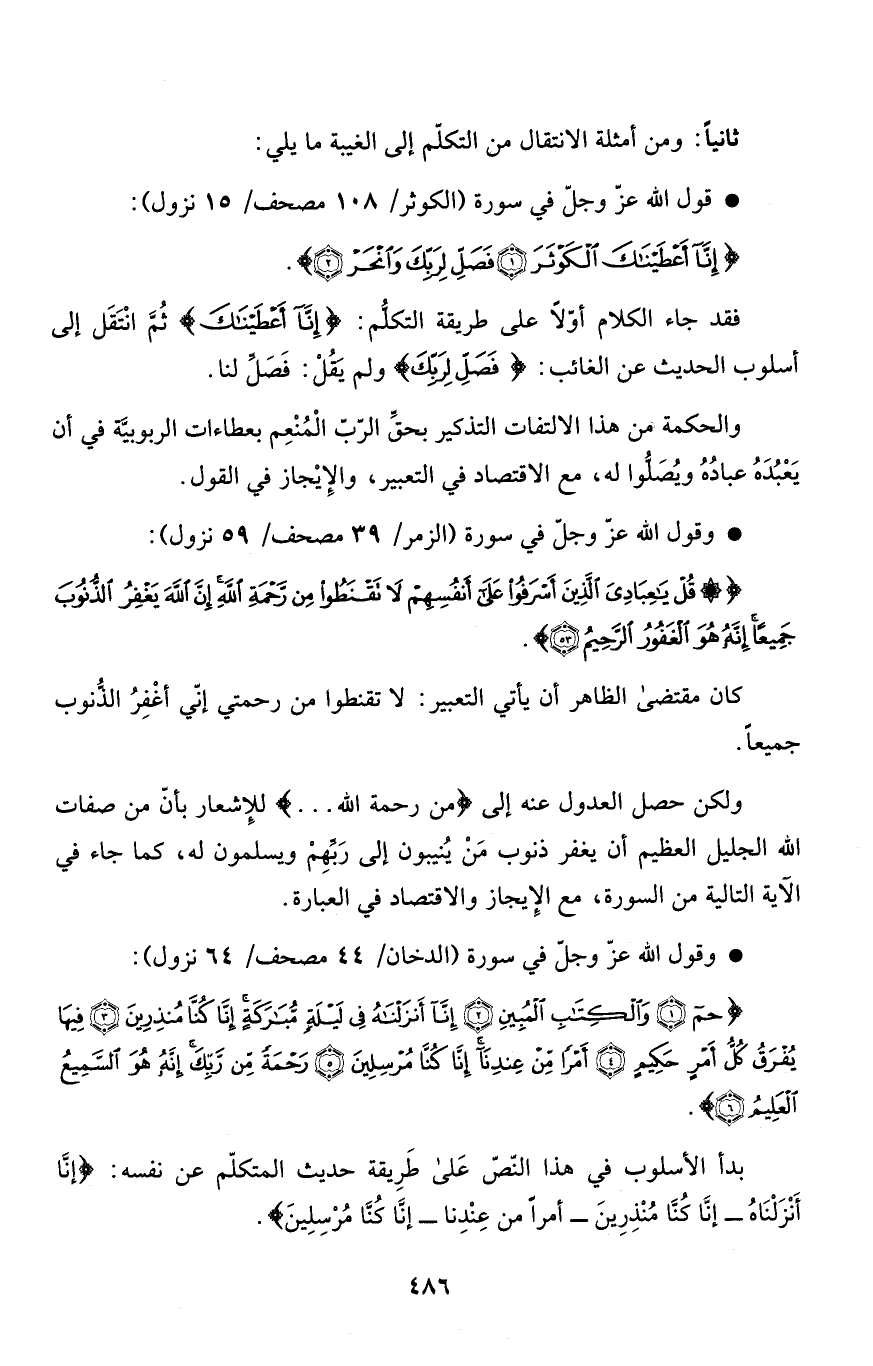 ثانياً: ومن أمثلة الانتقال من التكلّم إلى الغيبة مايلي: