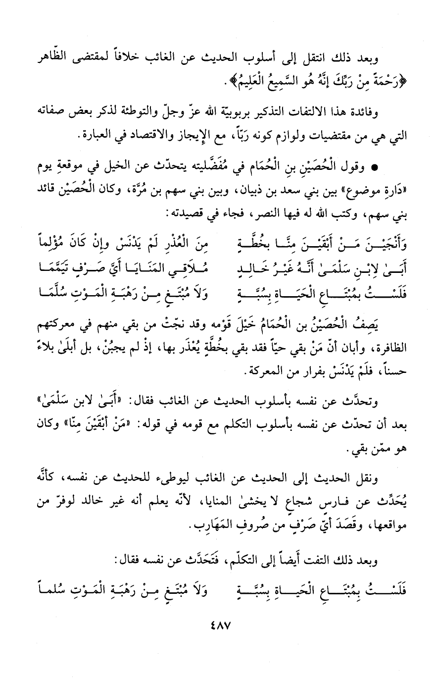 وتحدَّث عن نفسه بأسلوب الحديث عن الغائب فقال: "أبى لابن سلمى" بعد أن تحدّث عن نفسه بأسلوب التكلم مع قومه في قوله: "مَنْ أبْقَيْنَ مِنّا" وكان هو ممّن بقي.