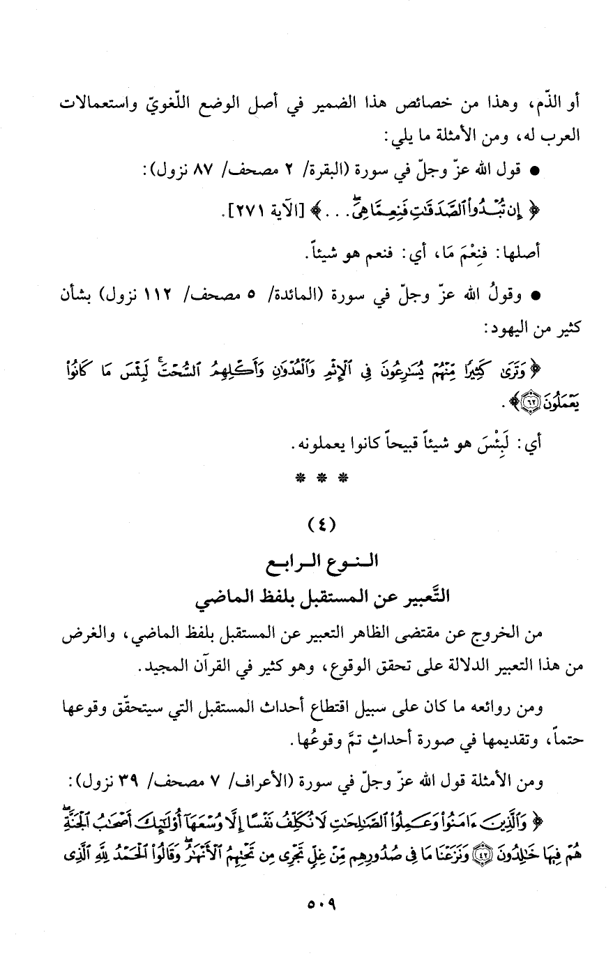 ومن روائعه ما كان على سبيل اقتطاع أحداث المستقبل التي سيتحقّق وقوعها حتماً، وتقديمها في صورة أحداثٍ تمَّ وقوعُها.