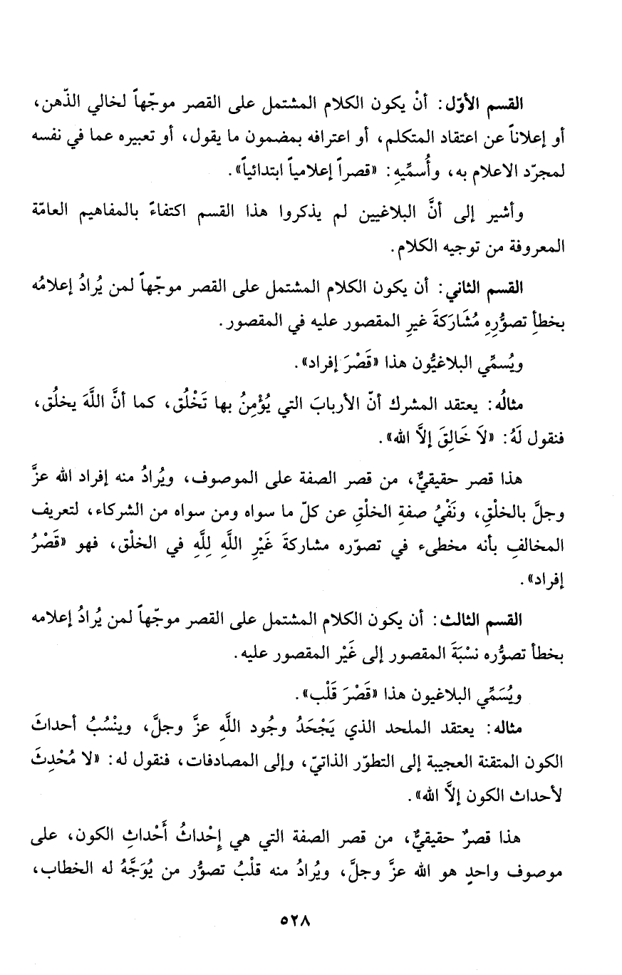 القسم الثاني: أن يكون الكلام المشتمل على القصر موجّهاً لمن يُرادُ إعلامُه بخطأِ تصوُّرِهِ مُشَارَكةَ غيرِ المقصور عليه في المقصور.
