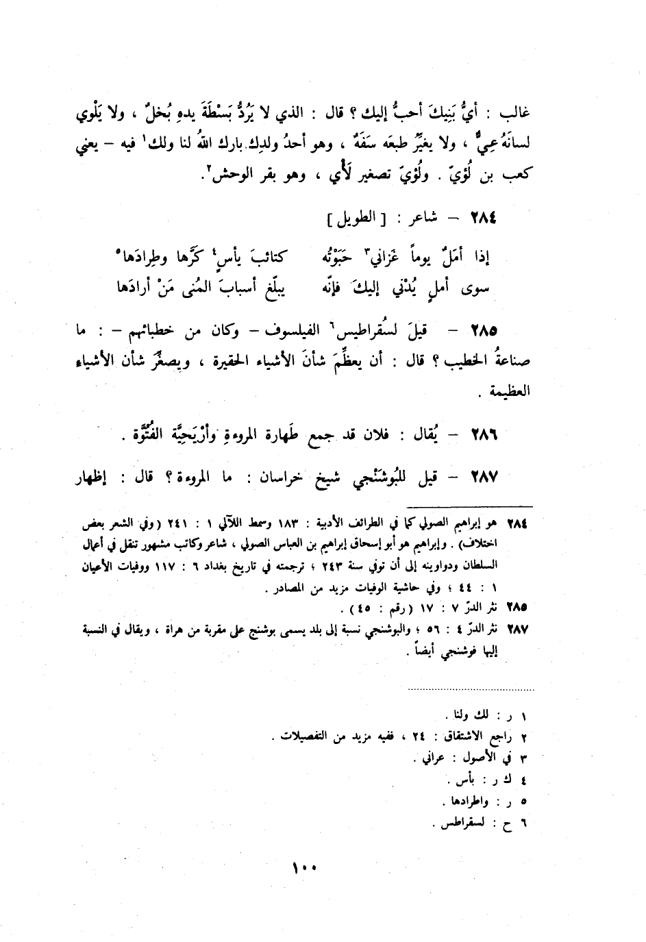 قيل للبوشنجي شيخ خراسان: ما المروءة؟ قال: إظهار